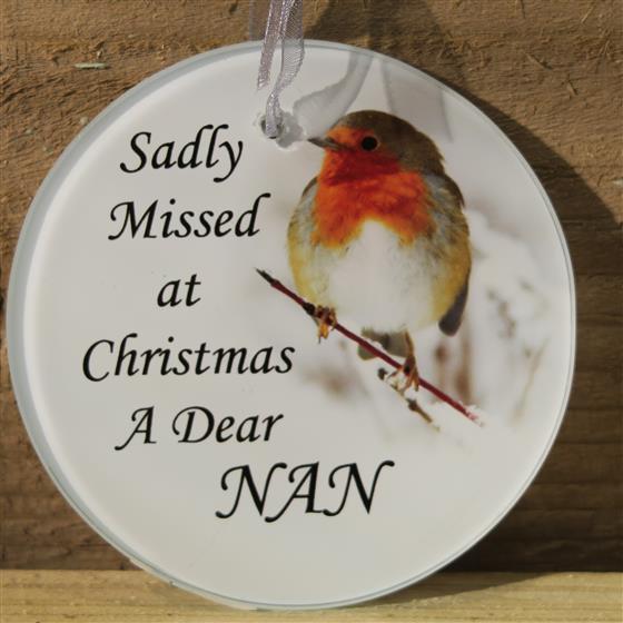 Glass memorial tree hanger/plaque with silver ribbon 9cm