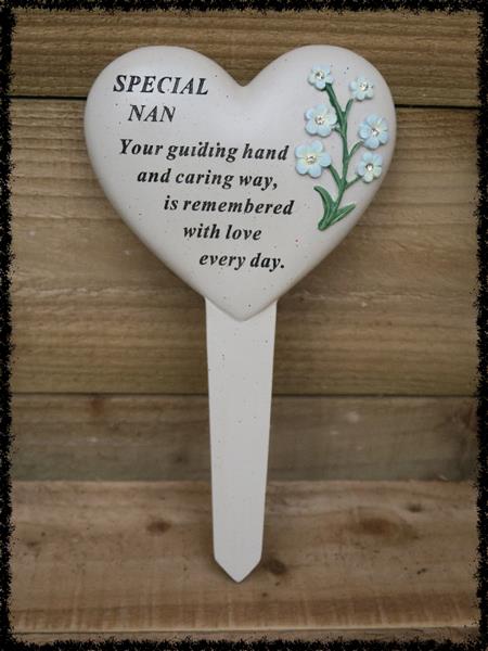 Frost resistance graveside memorial heart on stake 23x13cm.