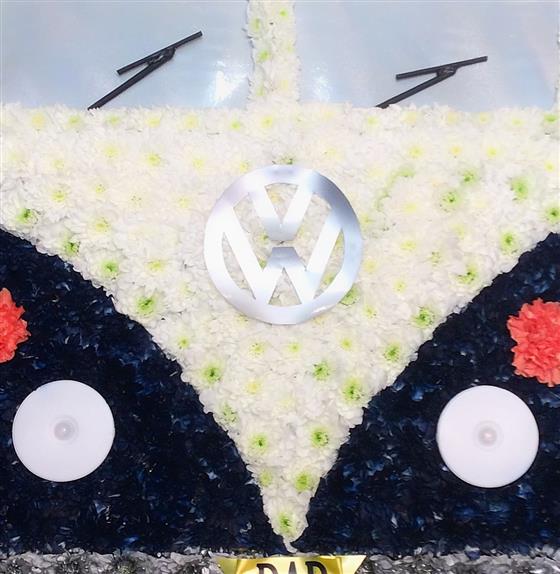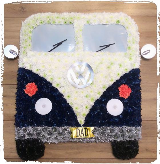 This 2d VW camper van Is such a fitting floral tribute for all those VW camper van fans.
