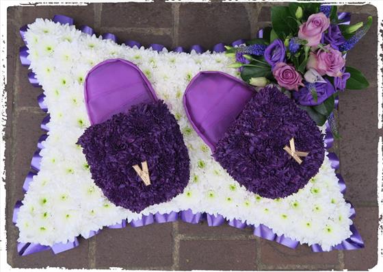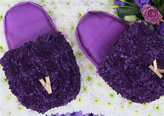 Grandma's slippers is a lovely floral tribute that has been designed in 3D , they are available in any colour with pleated ribbon to match the chosen slipper colour and a floral le bump . Names and initials can be added, click to add these details in the comments box when ordering